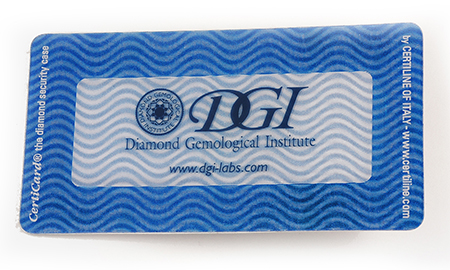 The Diamond Seal is the an exclusive service provided by our laboratory, the seal is a luxurious plastic card which seals the diamond inside a transparent plastic capsule, and cannot be broken without leaving evidence! When you purchase a diamond with a DGI Certificate and a Diamond Seal you know for sure that the diamond inside the seal is the diamond that was examined by the laboratory!